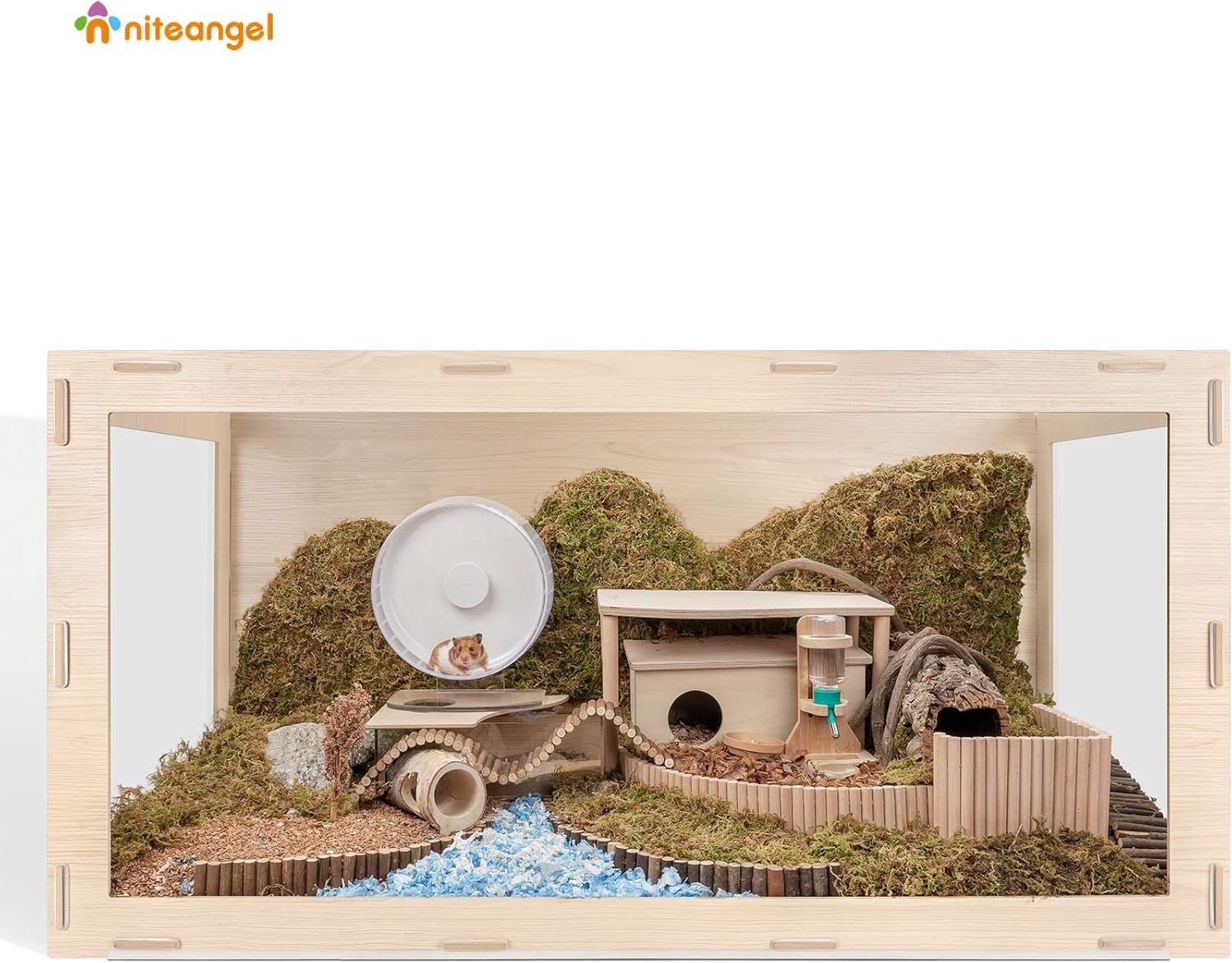 Niteangel Bigger World – MDF Aspen Terrarium for Hamster Gerbils Mice Lemming Degus or Other Small-Sized Pets (47.2 x 19.7 x 23.6 inches, Burlywood)