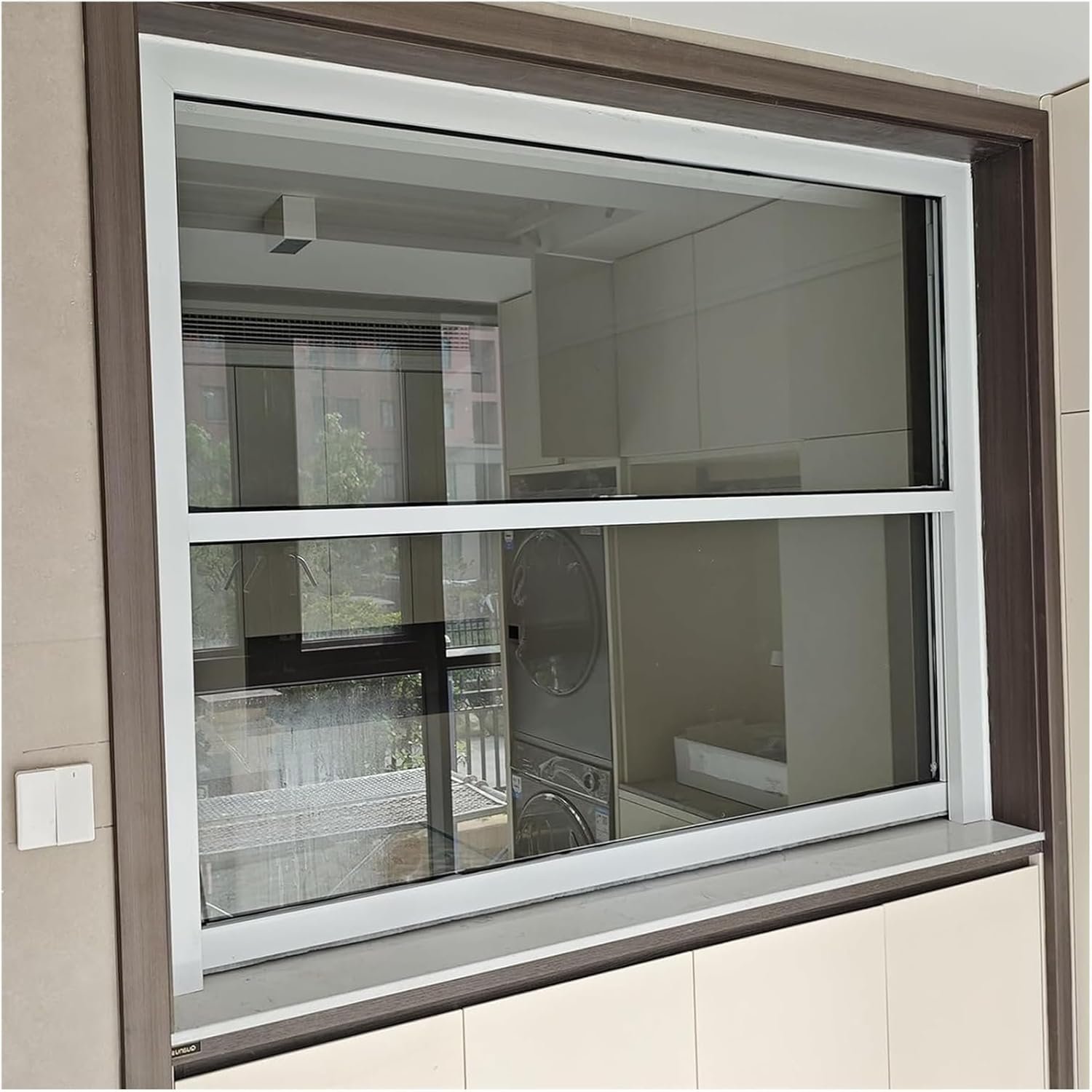 LZMZMQ Vertical Sliding Window for Kitchen/Bathroom/Laundry Rooms Ventilation, Flush Mount Shed Replacement Windows with Tempered Glass & Screen, Aluminum Double Hung Window(60x83cm/24x33in)