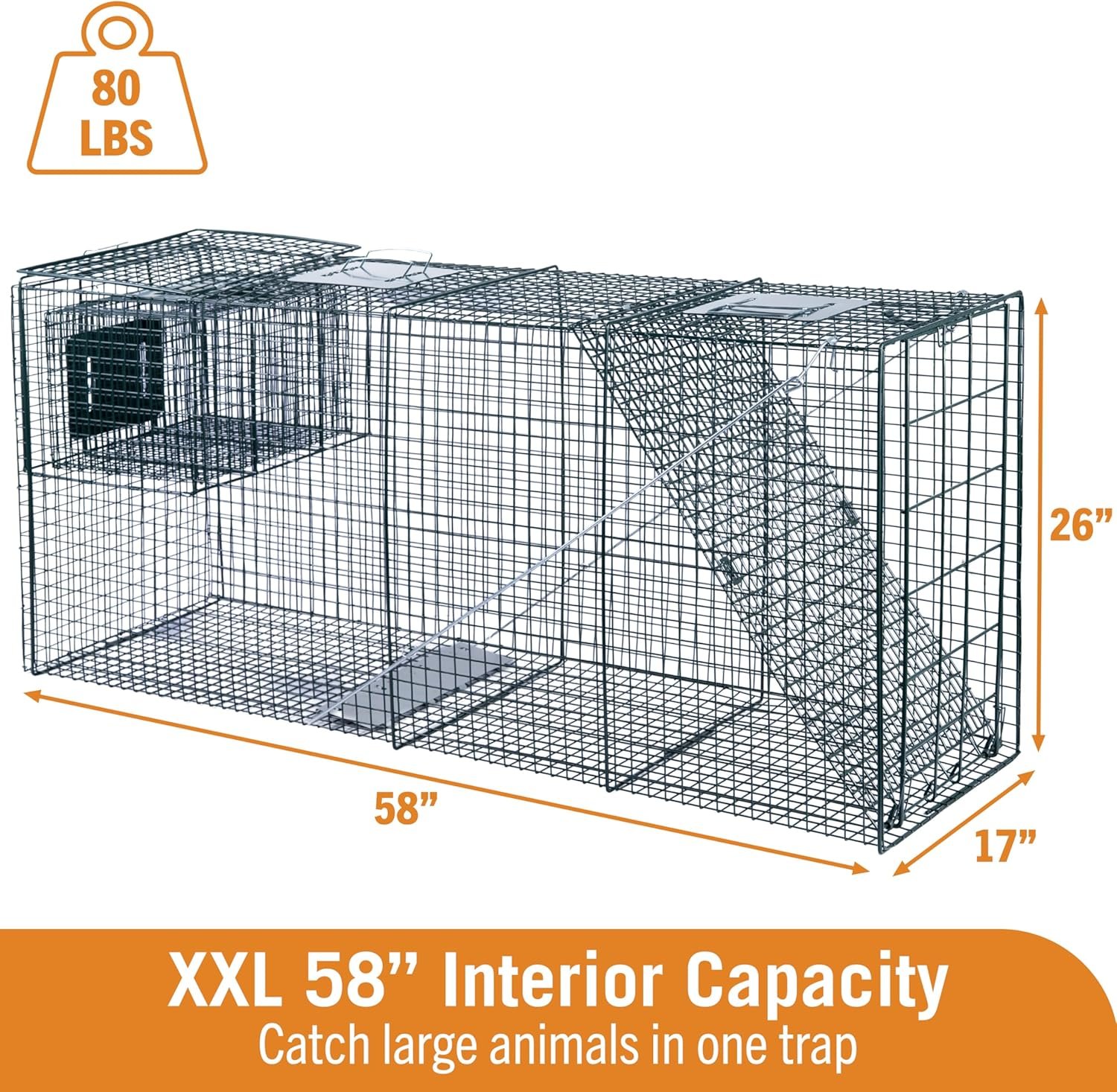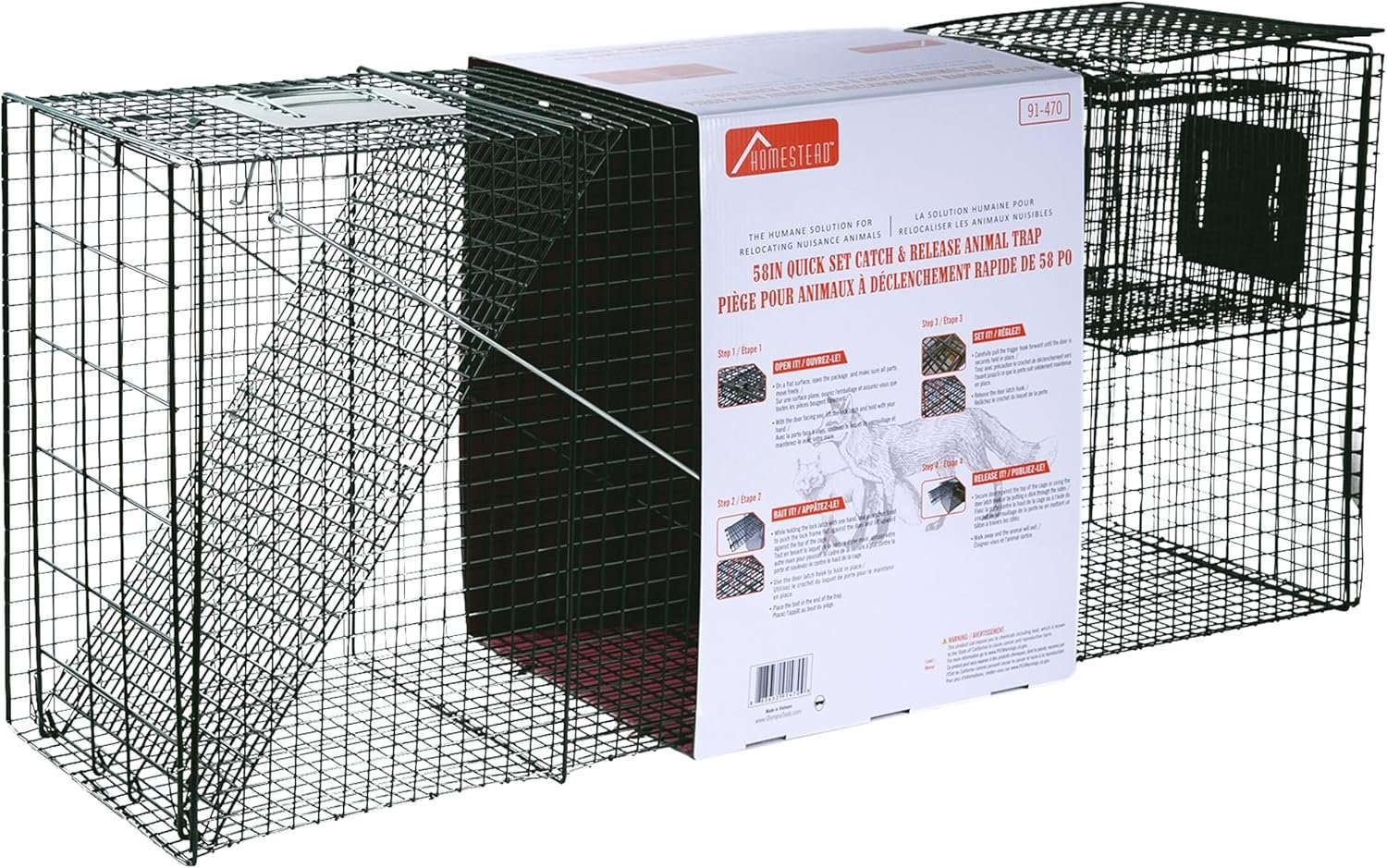 HOMESTEAD 58” Heavy Duty Live Animal Trap – Professional Quick-Set Trigger & Bait Plate, Galvanized Steel Cage, Camouflage Finish, Fully Assembled | Humane Catch & Release for Dog, Raccoon, Coyote